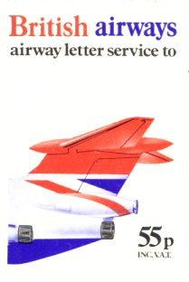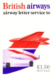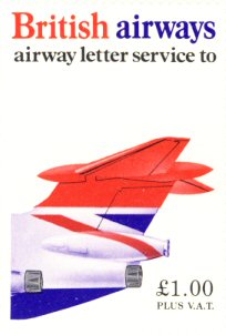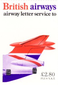 removed from the BEA cachet so that it read “British Airways”; new, British Airways, stamps were not issued until
