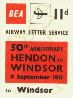 9th September 1961. 50th Anniversary of the First United Kingdom Aerial Post from Hendon to Windsor.