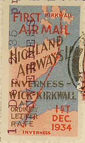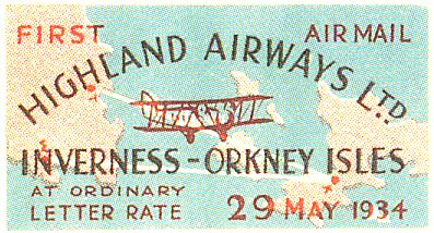 Highland Airways issued vignettes for the first mail flight between Inverness and Kirkwall, which was sold for