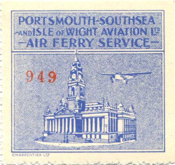 Blue with red serial number. Portsmouth City Hall and aircraft in flight.