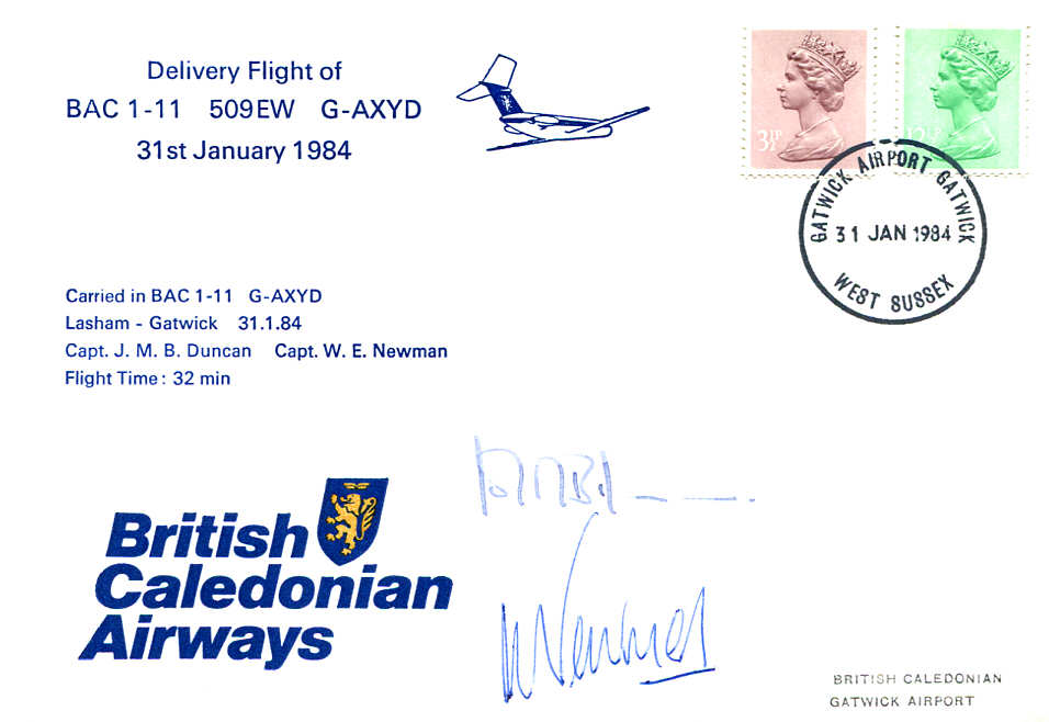 31st January 1984. Delivery Flight of BAC 1-11 509EW G-AXYD