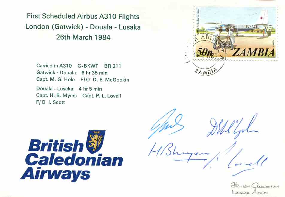 26th/27th March 1984. First Scheduled Airbus A310 Flights to Douala and Lusaka