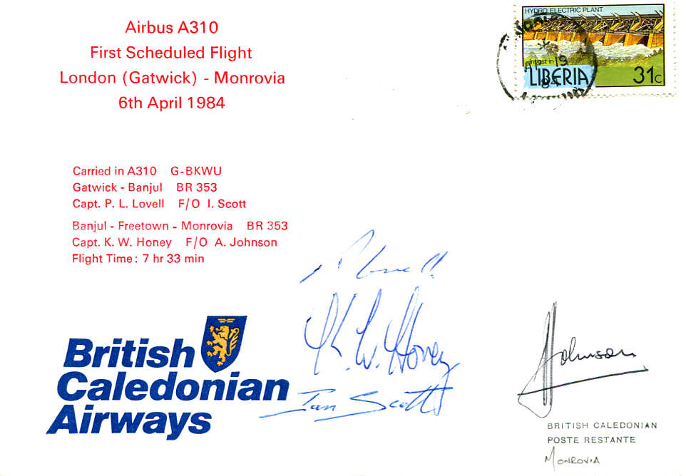 6th/7th April 1984. Airbus A310 First Scheduled Flight to Banjul, Freetown and Monrovia