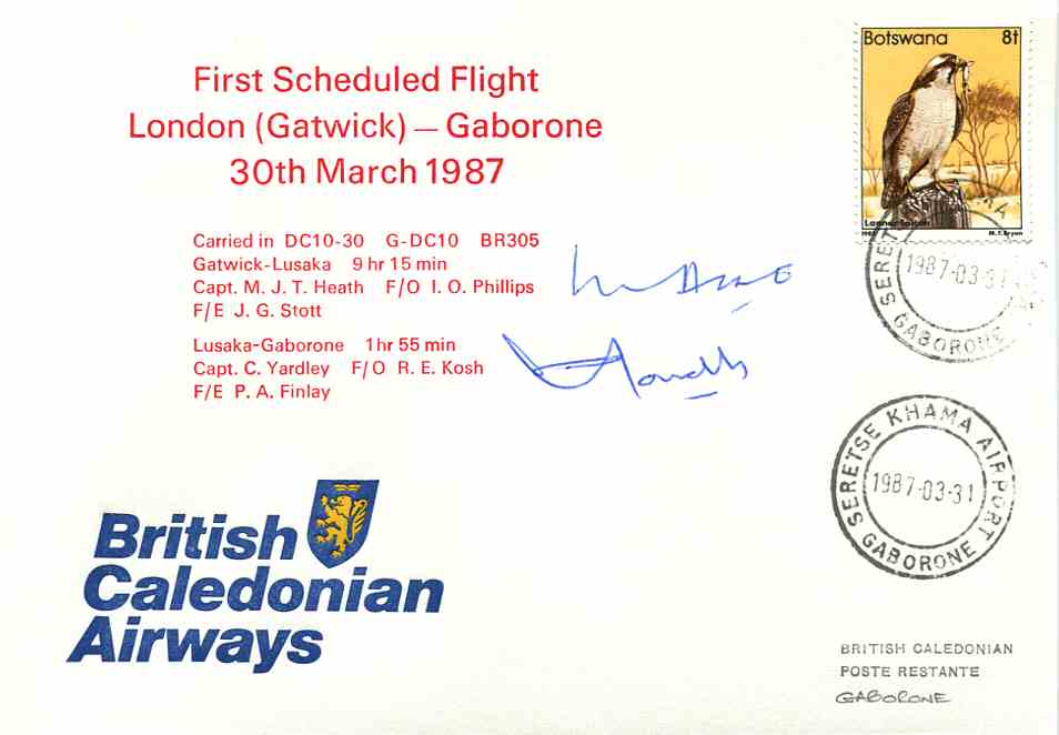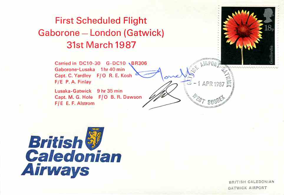 30th - 31st March 1987. First Scheduled Flight Gatwick to Gaborone