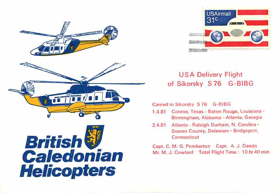 1st - 2nd April 1981. USA Delivery Flight of Sikorsky S76 G-BIBG