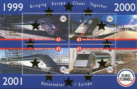 Designer: Eurotunnel. Printer: The House of Questa. Offset lithography in miniature sheets of 4