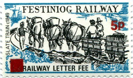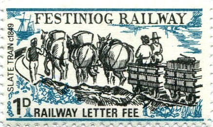 Black and turquoise blue. Horse-drawn slate train c. 1849.