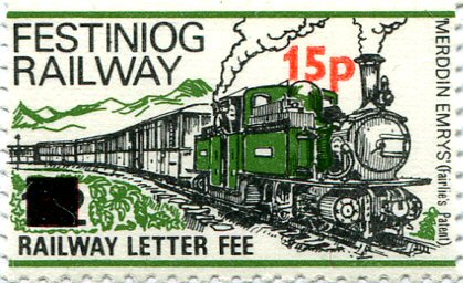 Black and red. F.R. 0-4-4-OT No. 10 Merddin Emrys and train.