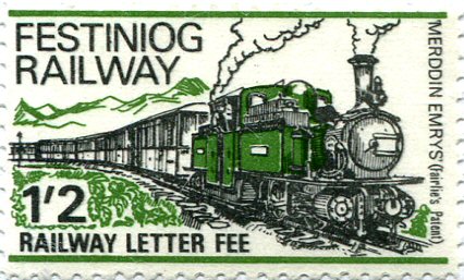 Cornflower blue. F.R. 0-4-4-OT No. 10 Merddin Emrys and train.