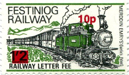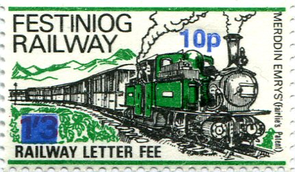 Dark red-lilac. F.R. 0-4-4-OT No. 10 Merddin Emrys and train.