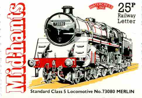 Black, red and yellow ochre. BR Standard Class 5 4-6-0 No. 73080 Merlin.