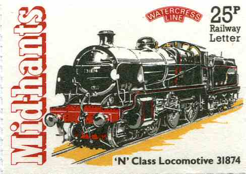 Black, red and yellow ochre. SR Class N 2-6-0 No. 31874.
