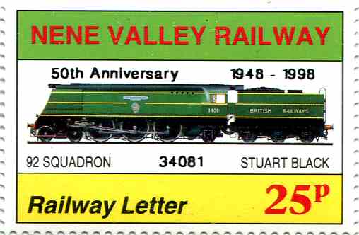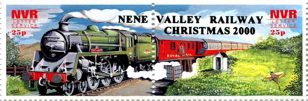 Issue of 1st June 1999 overprinted 'Nene Valley Railway/Christmas 2000' in black.
