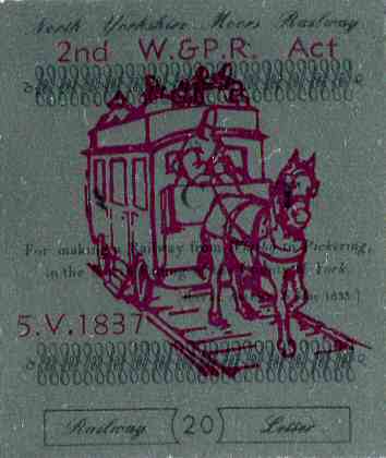 Issue of 1st May 1983 overprinted '2nd W. & P.R. Act / 5.V.1837' and a W&PR Horse-drawn Train in maroon by Abbey