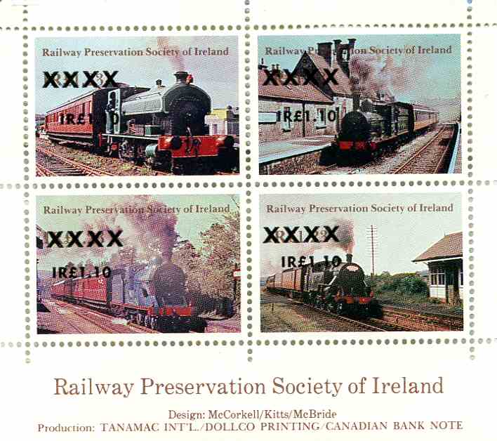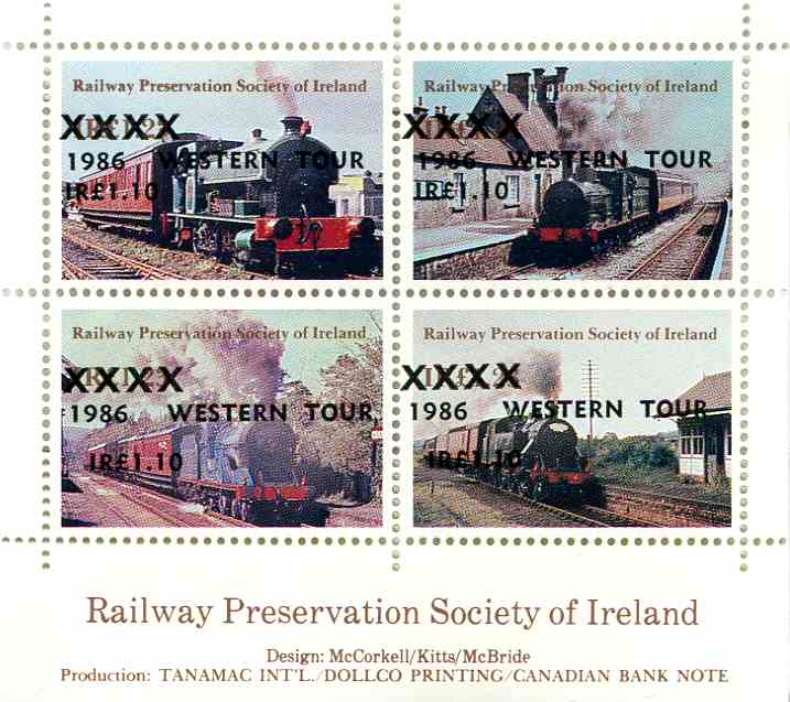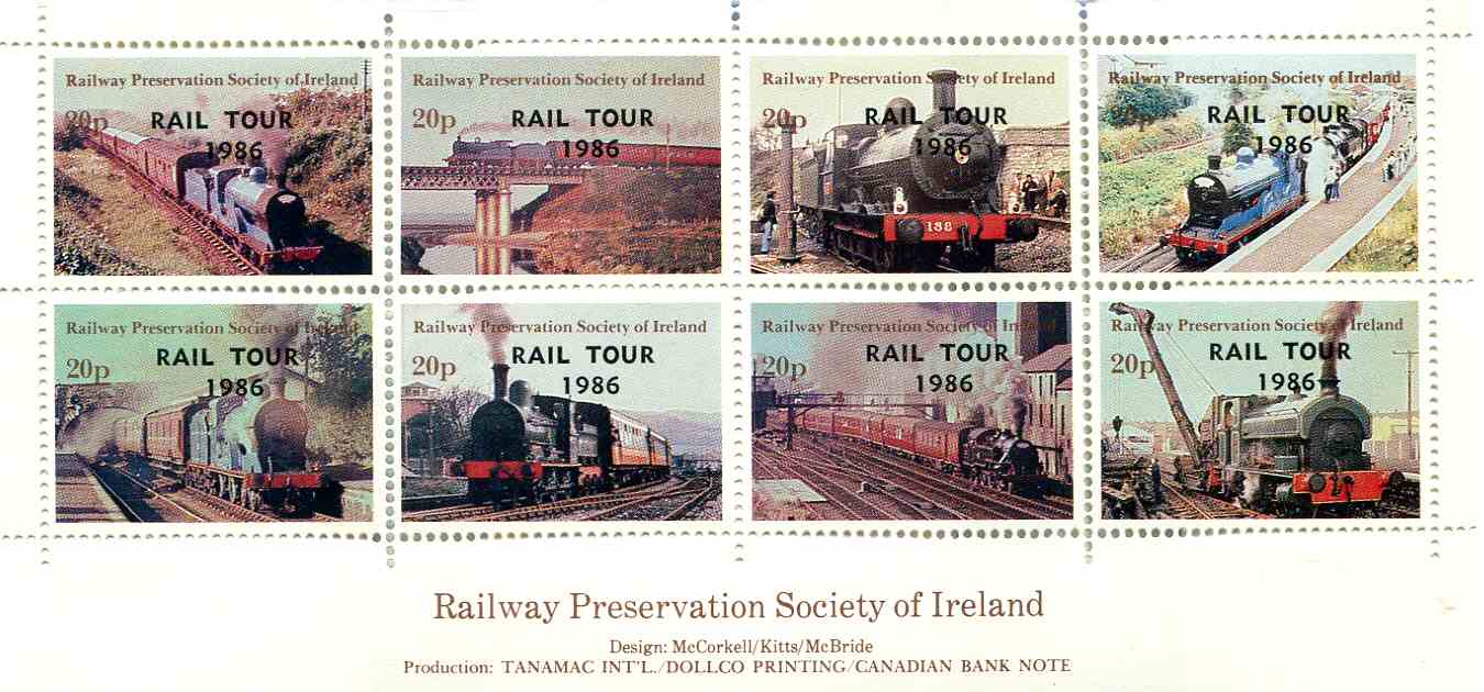 Issue of 10th May 1985 overprinted ‘RAIL TOUR 1986’ in black by Brough, Cox and Dunn, Belfast.