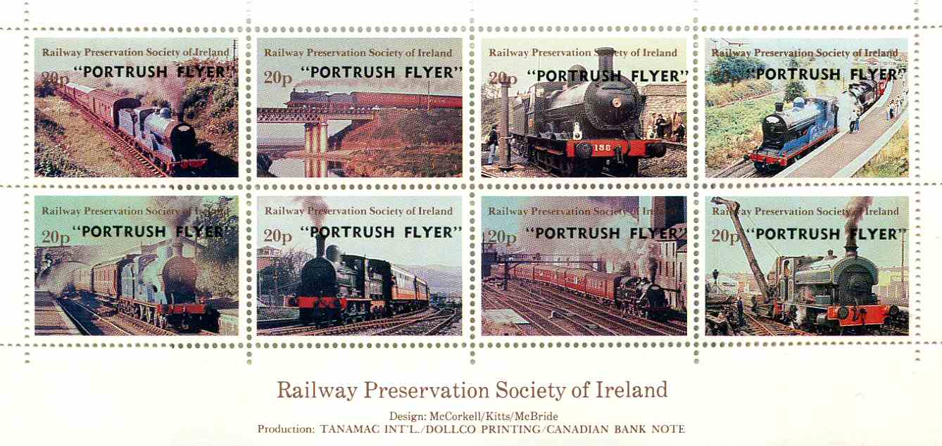 Issue of 10th May 1985 overprinted “PORTRUSH FLYER” in black by Brough, Cox and Dunn, Belfast.