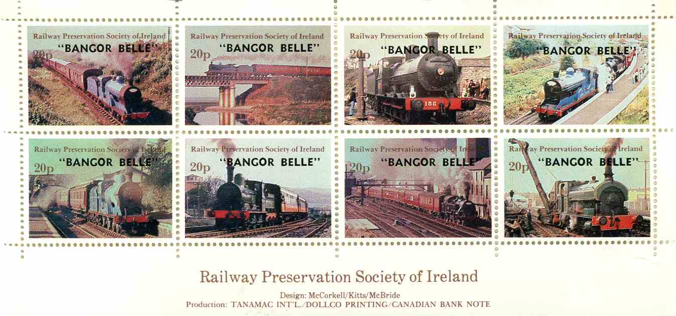 Issue of 10th May 1985 overprinted “BANGOR BELLE” in black by Brough, Cox and Dunn, Belfast.