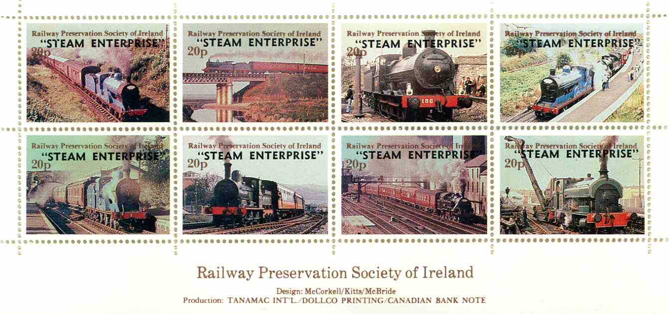 Issue of 10th May 1985 overprinted “STEAM ENTERPRISE” in black by Brough, Cox and Dunn, Belfast.