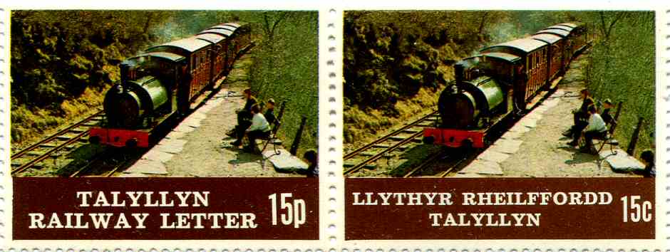 Blue and black. Adapted from a Railway Letter Stamp design of the 1890s.