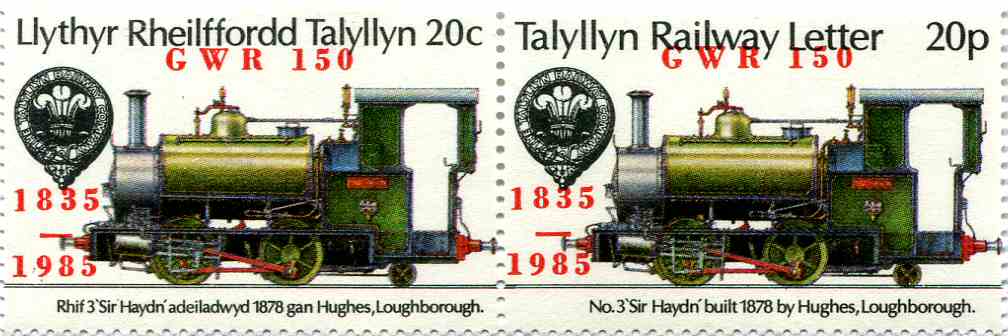 Issue of 23rd September 1981 overprinted GWR 150 1835-1985 in red by Northampton Paper Company.