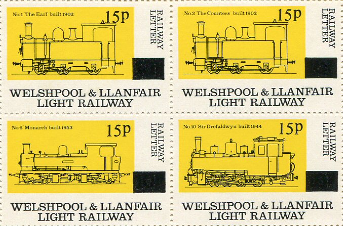 Olive-green, red and black. Beyer Peacock 0-6-0T No. 1 The Earl and Hunslet 2-6-2T No. 14.